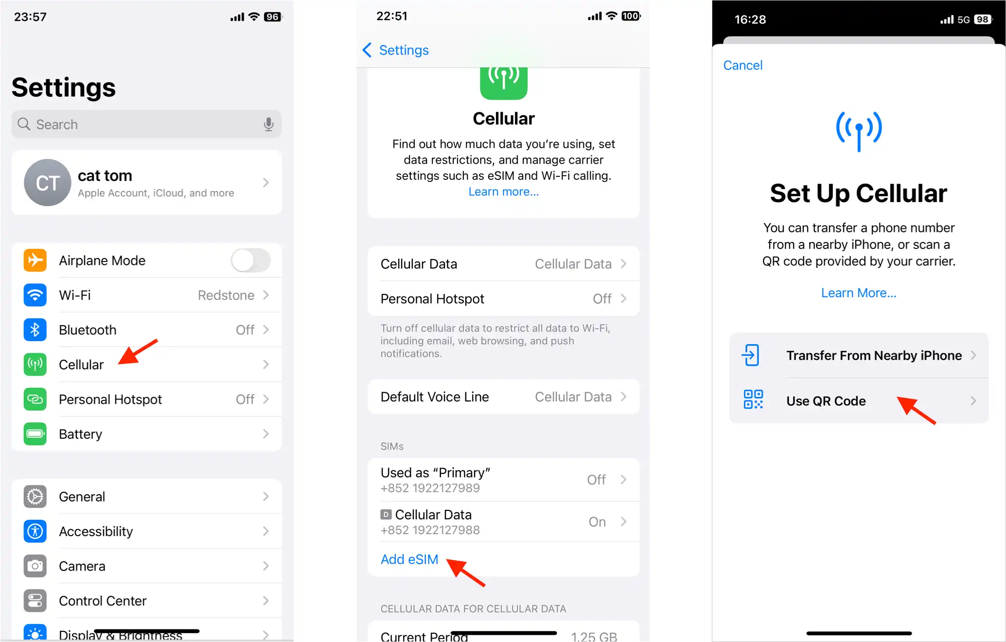 1. For an eSIM-enabled iPhone, go to Settings > Cellular > Add eSIM, then follow these steps: