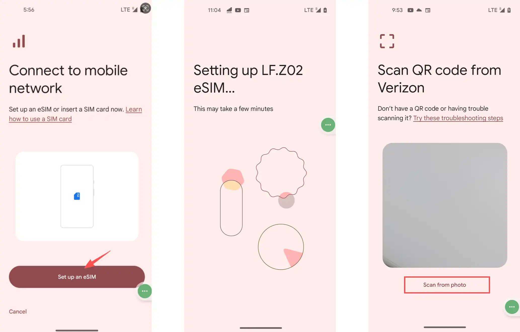 2. Click "Set up eSIM" to go to the "Scan Verizon QR code" page, and then click "Scan from photo."